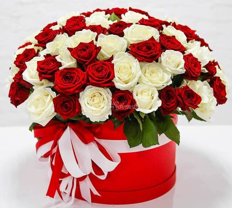 Коробка Роза бордовая 23 шт Роза белая 28 шт