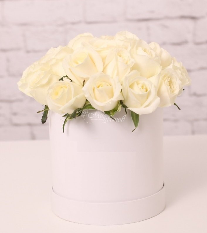 Коробка Роза белая - 7 шт Хризантема кустовая - 2 шт Эустома - 2 шт Трахелиум - 2 шт Яблоки или фрукты по вашему желанию