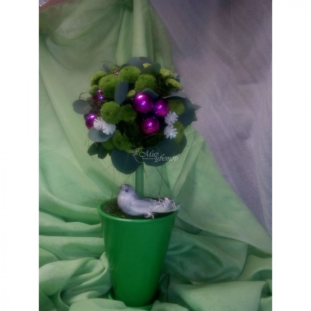 Горшок - 1 шт Хризантема 3 шт Эвкалипт Новогодние шары