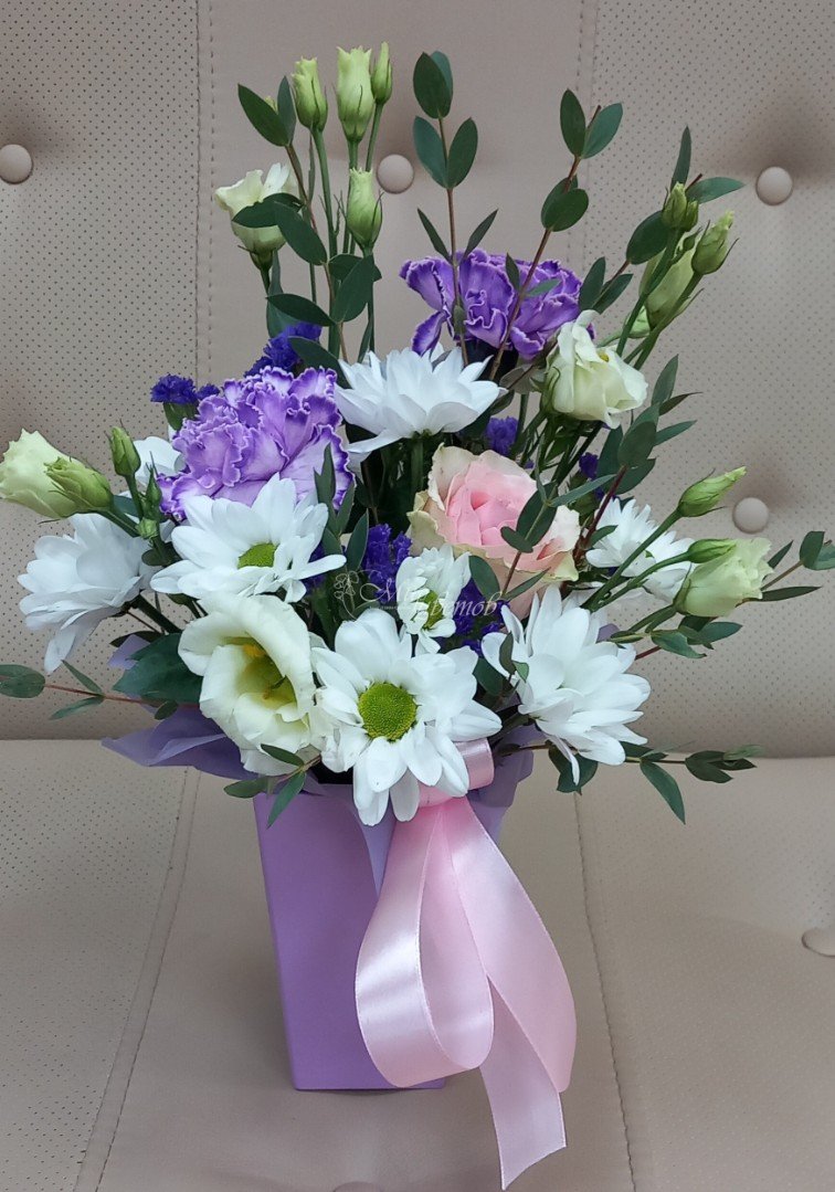 Коробка Диантус Эустома Хризантема кустовая Зелень