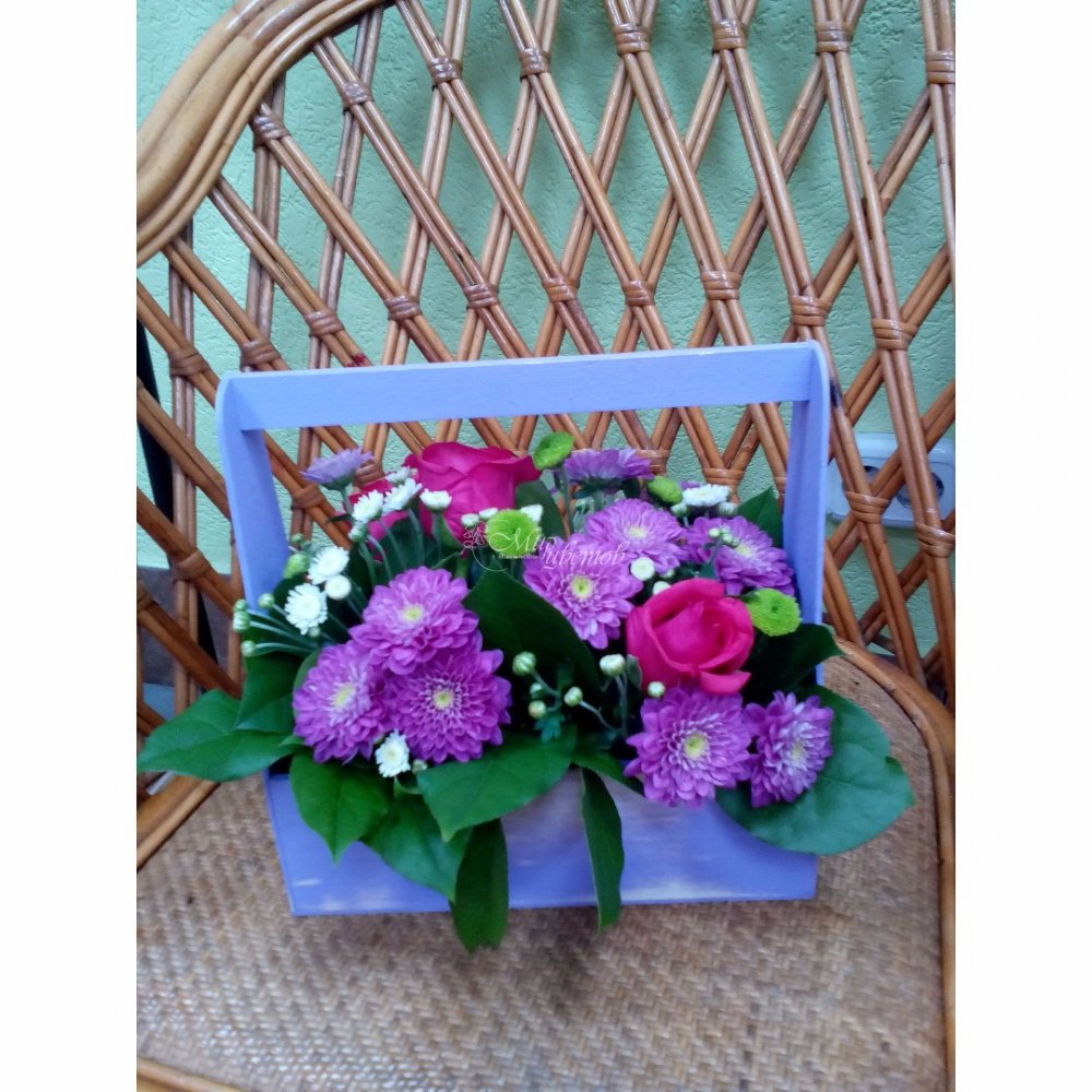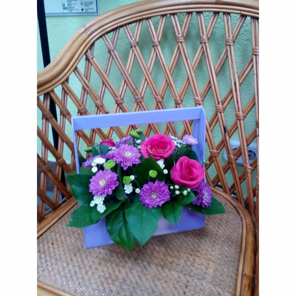 Ящик Роза - 3 шт Хризантема кустовая - 2 шт Зелень