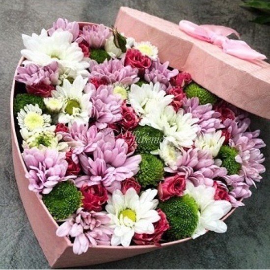 Коробка Хризантема кустовая- 4 шт Роза кустовая - 2