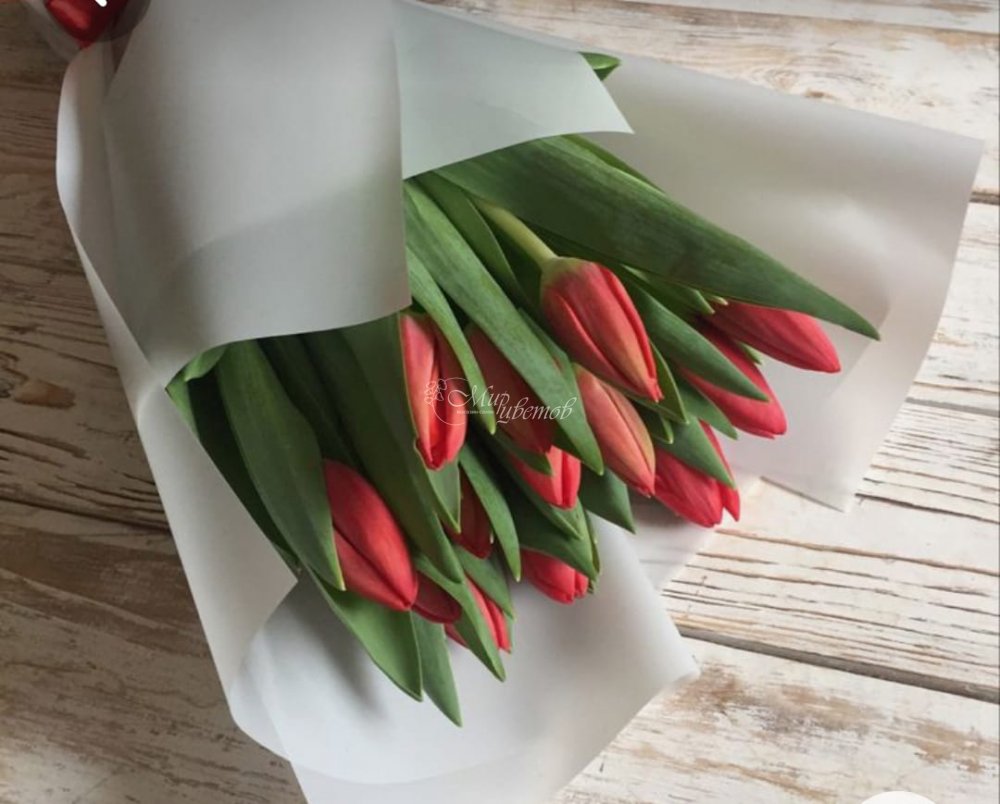Тюльпан 15 шт Пленка матовая Лента атлас