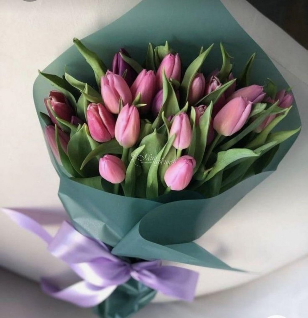 Тюльпан - 19 шт Пленка матовая Лента атласная