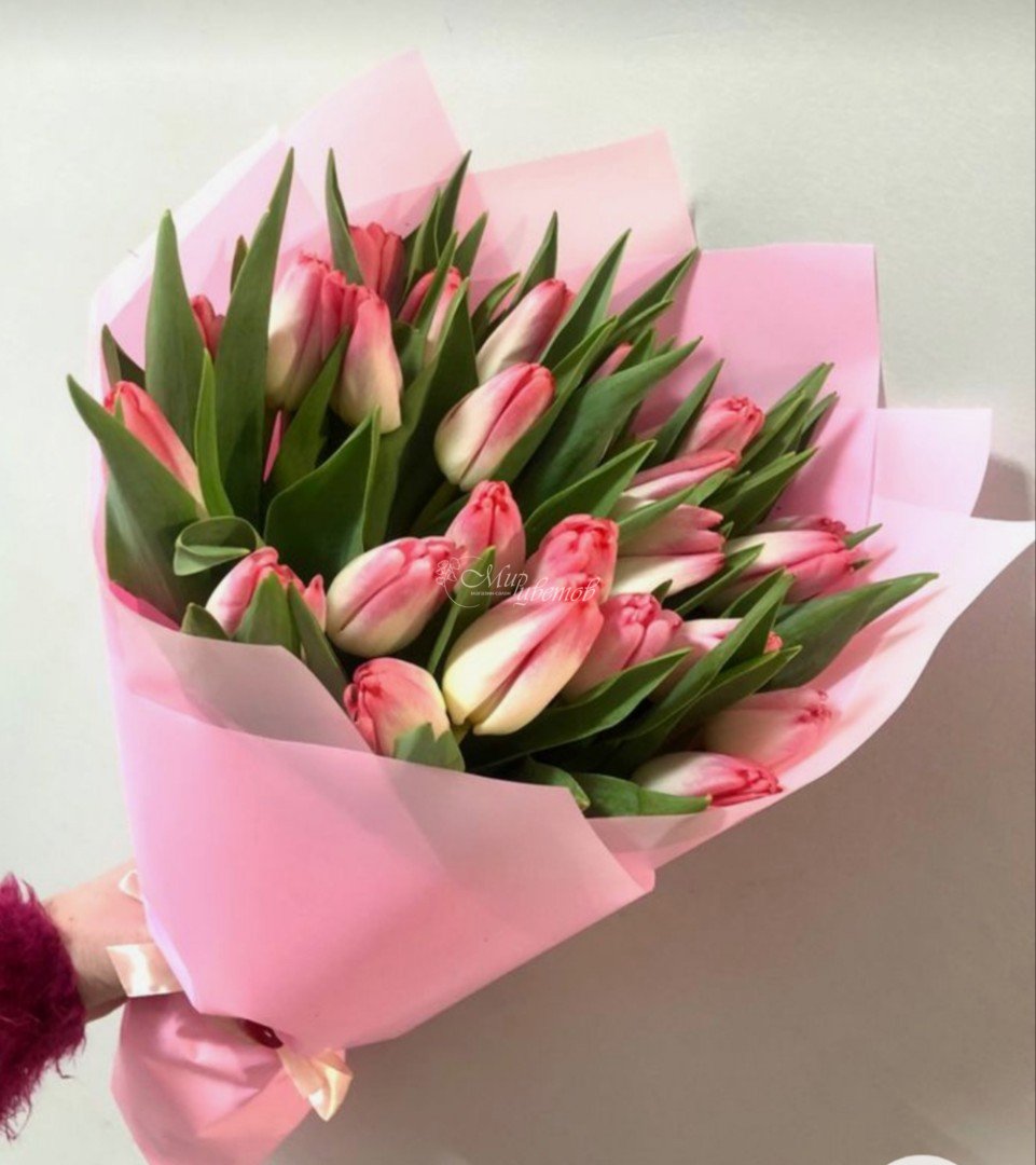 Тюльпан - 25 шт Пленка матовая Лента атлас