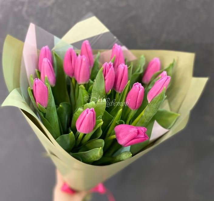 Тюльпан - 15 шт Пленка матовая Лента атлас
