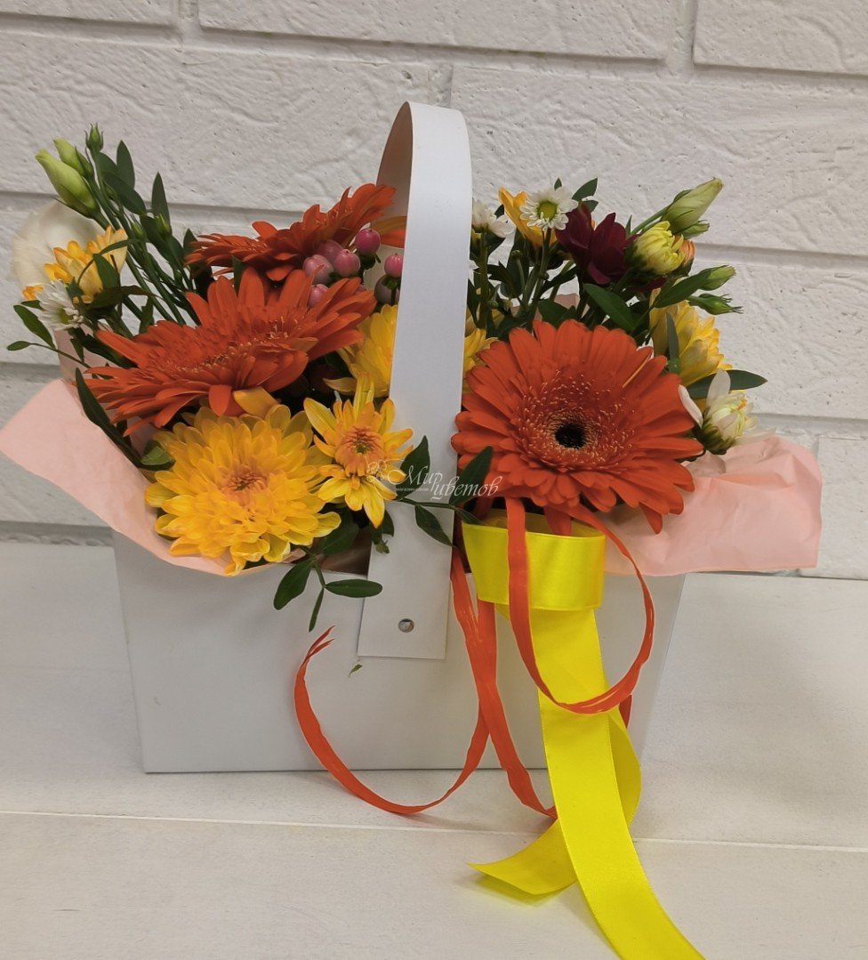 Кашпо Герберы Хризантема кустовая зелень Лента атлас