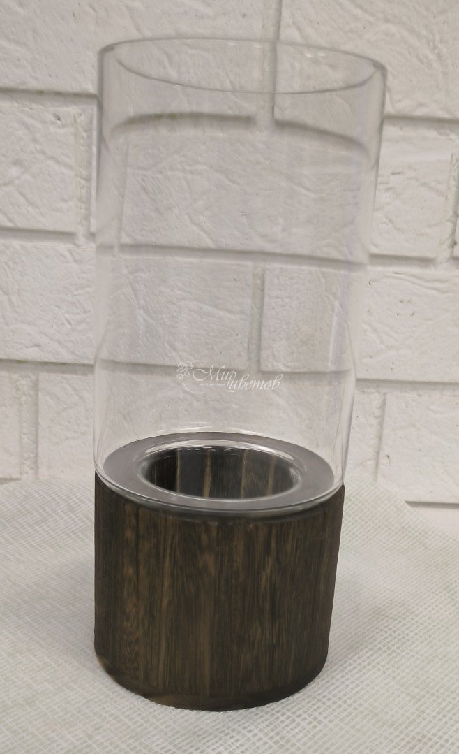 Стеклянная ваза в сочетании с деревом