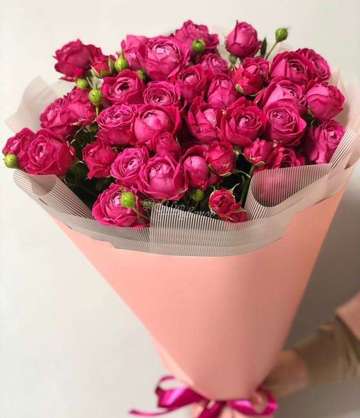 Розы Кустовые розы Герберы Альстромерии Гвоздики Зелень Пленка матовая Лента атлас