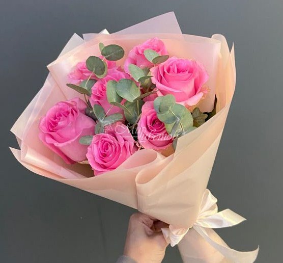 Роза розовая Эвкалипт Пленка матовая Лента атлас